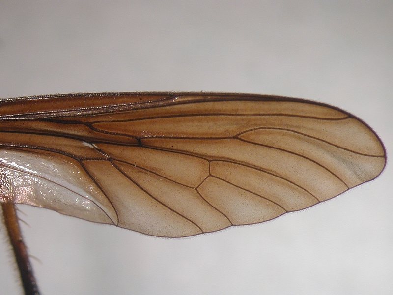 Gesichtsbestäubung in der Mitte durch einen glänzenden Streifen unterbrochen [Abb. 5]; Flügel sehr stark getönt [Abb. 6]