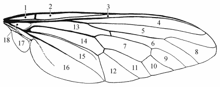 1 = zusätzliche Querader zwischen R4 und R5. -